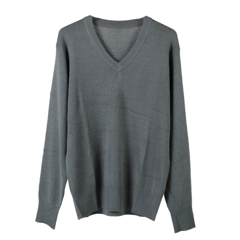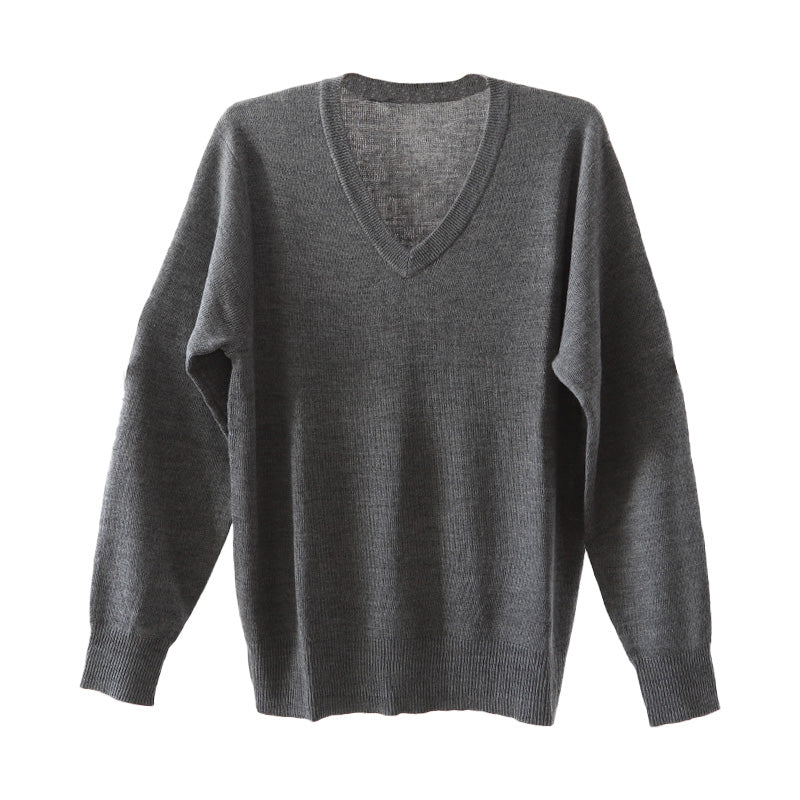 男子用の無地V首(Vネック)スクールニットセーターです。