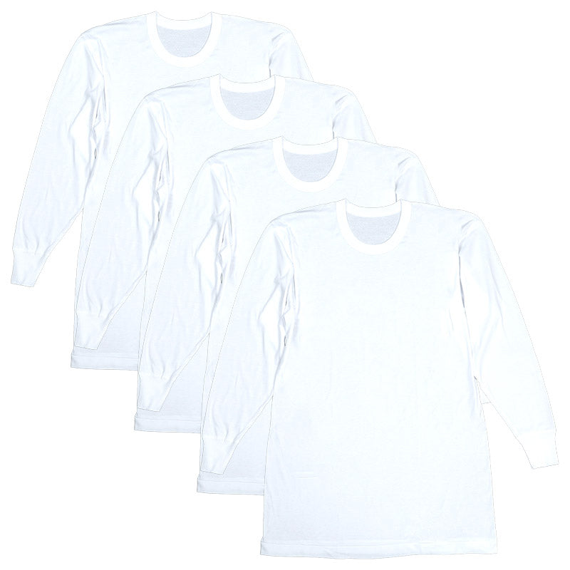 綿100% 長袖 丸首 シャツ 4枚組 フライス 3L 4L 5L 6L メンズ 肌着 下着 アンダーウェア インナー 白シャツ 白 ホワイト 無地 大きいサイズ コットン 3l 4l 5l 6l