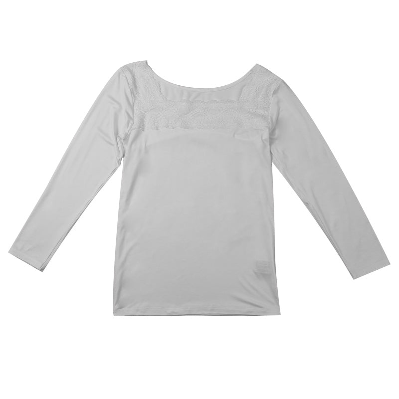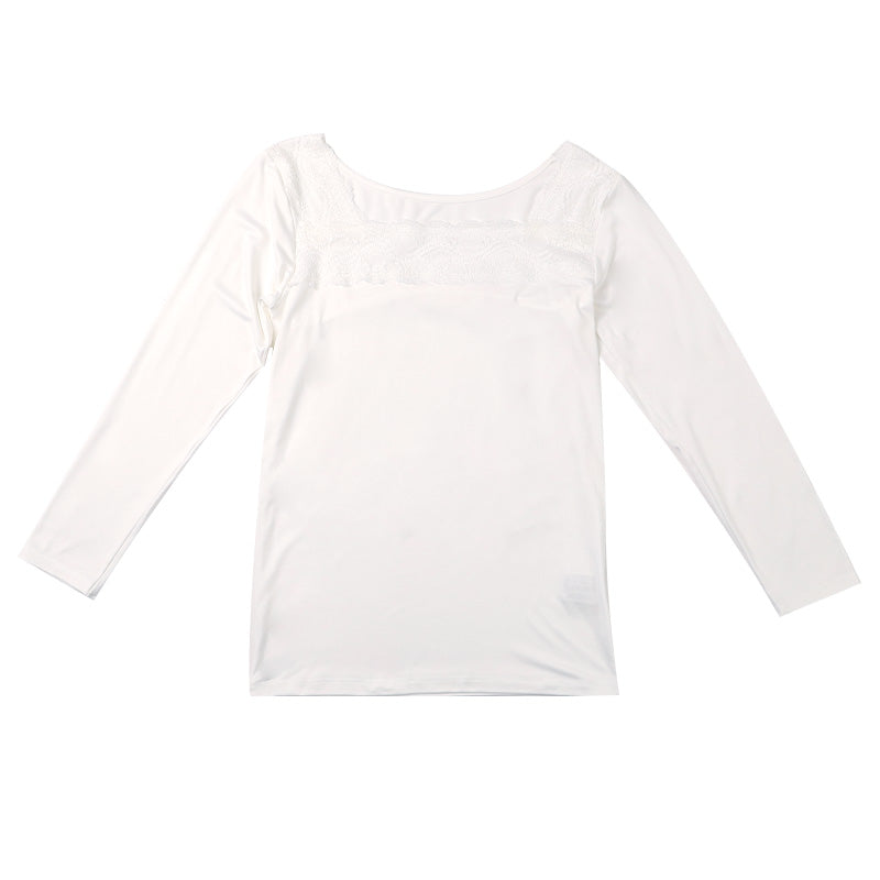 ピーチ起毛でほんのり暖かく心地よい、レディース 8分袖 フロントレースインナー です。