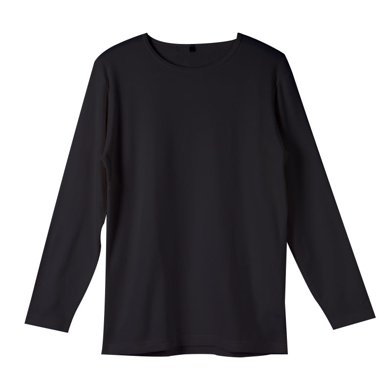 寒い季節にうれしい「暖か当て布付き 長袖クルーネックTシャツ」は、背中部分にボア素材の当て布をプラスした特別設計。