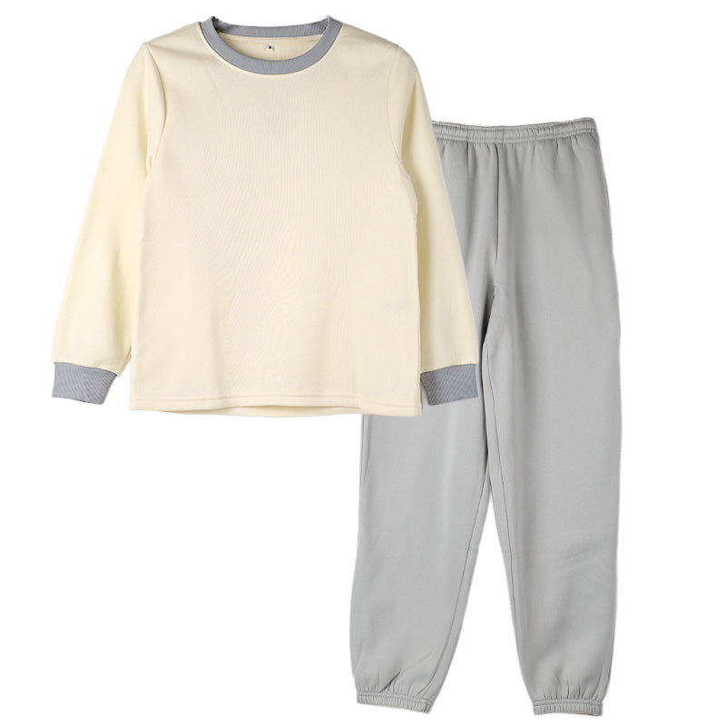 長袖トップスと長ズボンの組み合わせで、全身をやさしく包みながら快適な時間をサポートします。