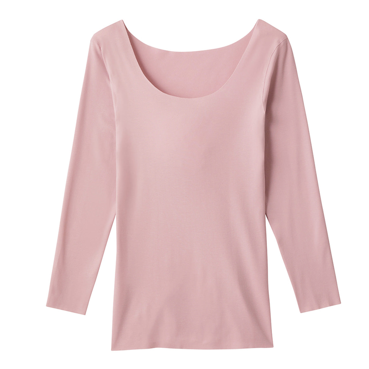 こちらの長袖インナーは、体から出た水分を吸収して熱に変える「吸湿発熱」加工が施されており、寒い冬も素早くあたためてくれます。