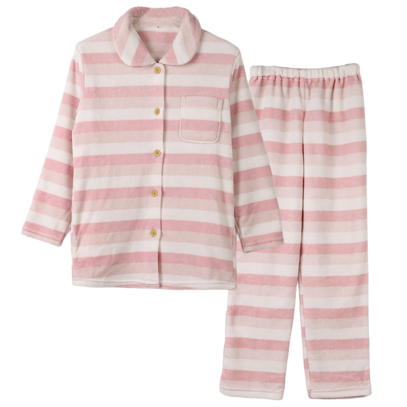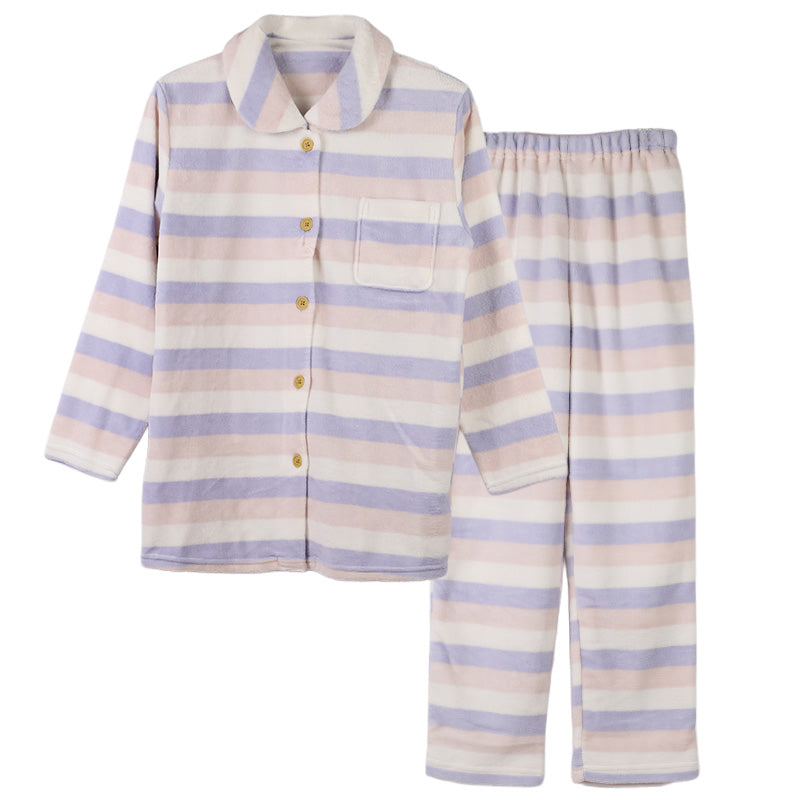 パジャマ もこもこ かわいい あったかい ルームウェア レディース 冬 ボーダー 部屋着 上下セット M L LL