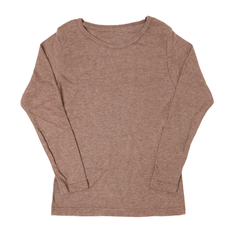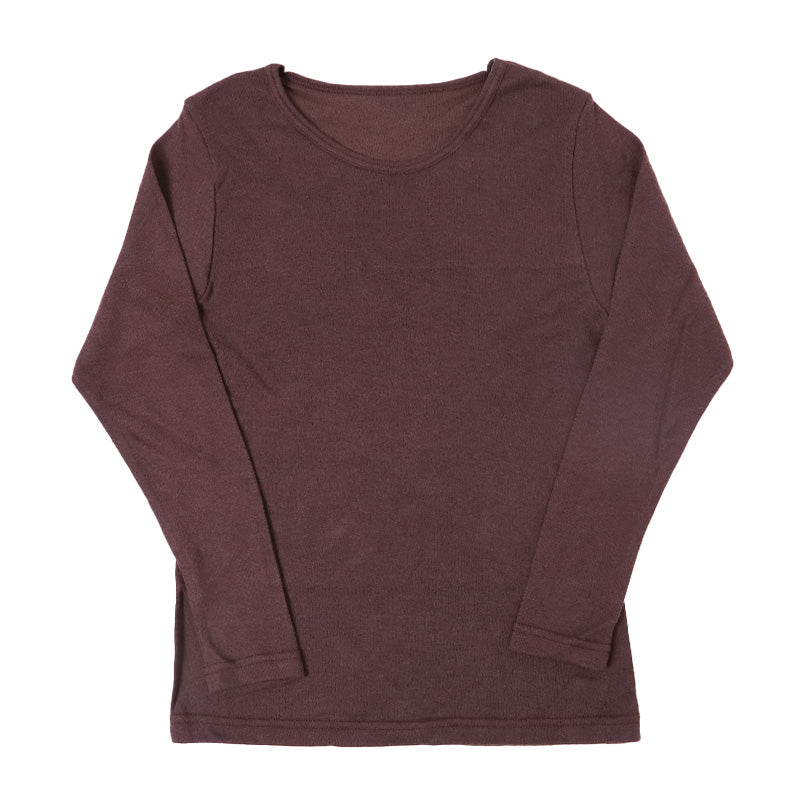 婦人 肩当て付き 両起毛 薄手 長袖丸首シャツ(M~LL)「商品番号:stk120」