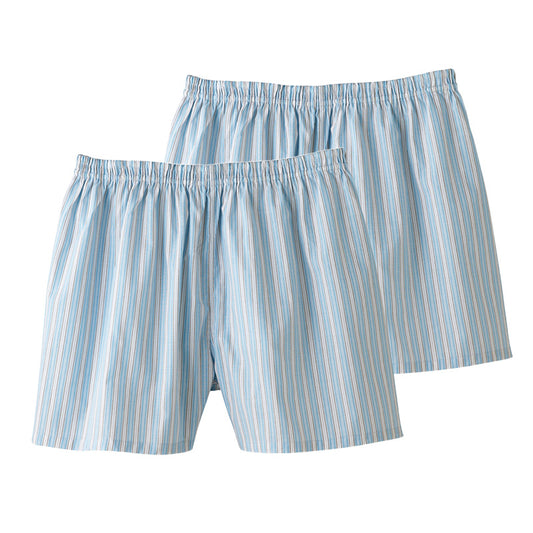 グンゼ 快適工房 紳士 前開き トランクス 2枚セット M・L (メンズ GUNZE 綿100% コットン 男性 下着 肌着 インナー 日本製 チェック 柄 青) (在庫限り)