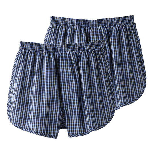 グンゼ 快適工房 紳士 前開き トランクス 2枚セット LL (メンズ GUNZE 綿100% コットン 男性 下着 肌着 インナー 日本製 チェック 柄 青 大きいサイズ) (在庫限り)