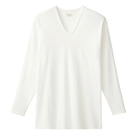 グンゼ 快適工房 紳士 長袖 袖丈長め 綿100% U首 日本製 M~LL メンズ GUNZE 綿100% コットン100 男性 下着 肌着 インナー Uネック やわらか さわやか 清潔 白 白色 ホワイト