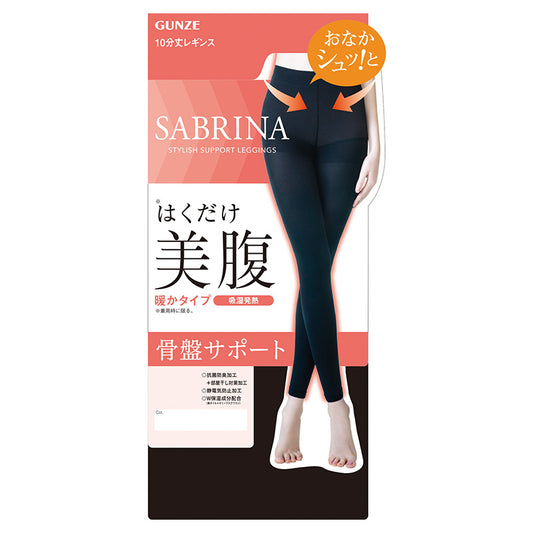 サブリナ はくだけ 美腹 骨盤サポート レギンス レディース 10分丈 M-L L-LL 黒 ブラック 着圧 80デニール 抗菌 防臭 部屋干し対策 静電気防止 保湿 椿オイル オリーブスクワラン 引き締め 細見え 美脚 美姿勢 補整 下半身ケア インナー タイツ 伸縮 フィット ストレッチ