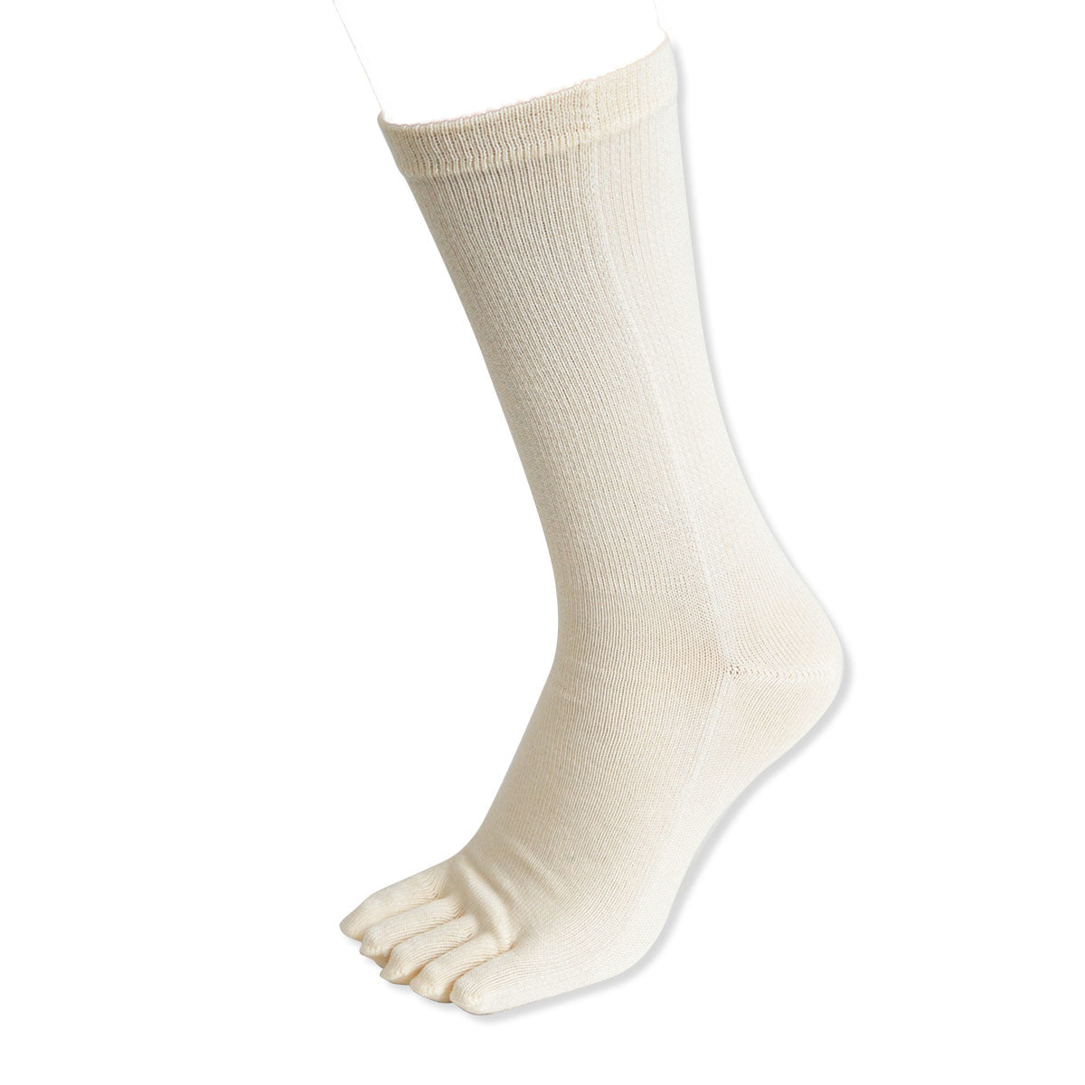 指ごとに生地で包み、足の指が広がることで血流を良くし、血行が促進されます。また、足指を自由に動かせることが刺激になり、足の冷え対策になります。