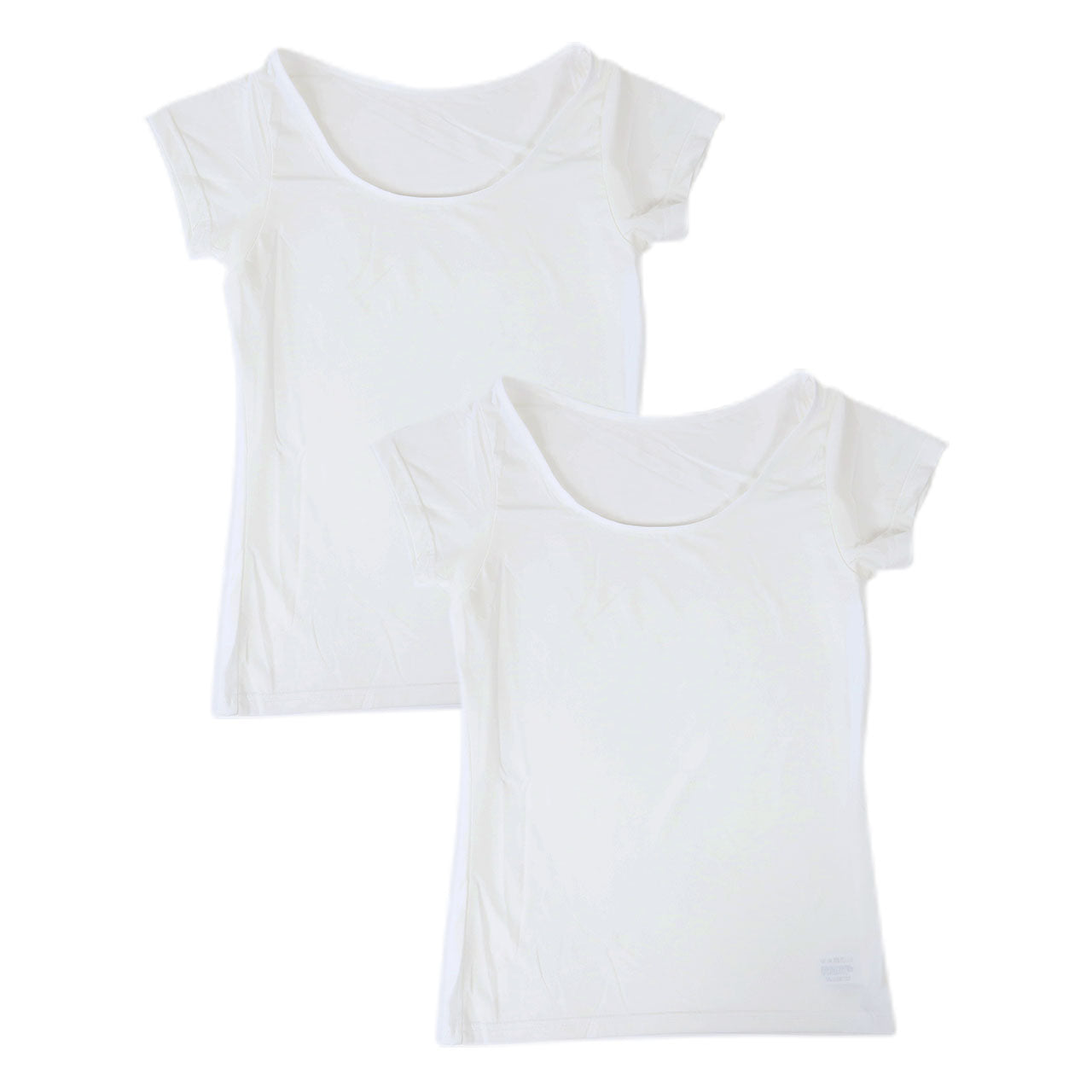 Suteteko 冷感ベア天 汗取り付きフレンチインナー 2枚組 M~LL (レディース 婦人 インナー 下着 フレンチ袖 半袖 吸汗速乾 脇汗 汗ジミ 汗取りパッド付 シンプル) (在庫限り)