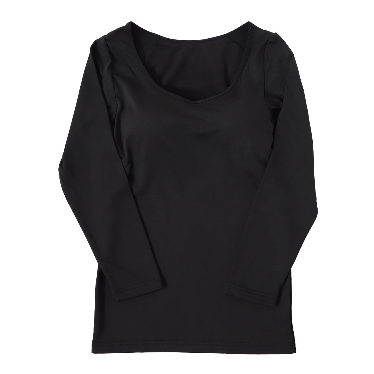 婦人用長袖カップ付きワイドネックシャツです。(カップ取り外し不可)