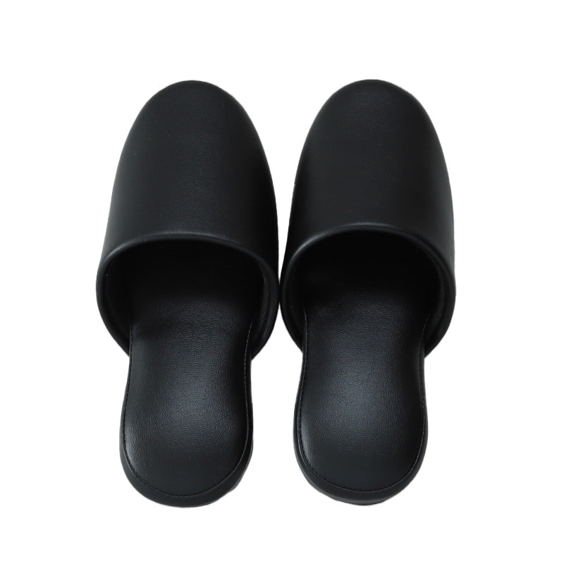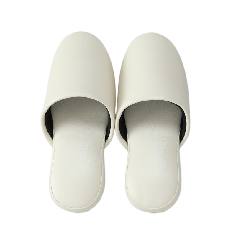 傷がつきにくく、耐久性があり汚れにも強い上質なPVC素材を使用し、足元をエレガントに演出するスリッパです。