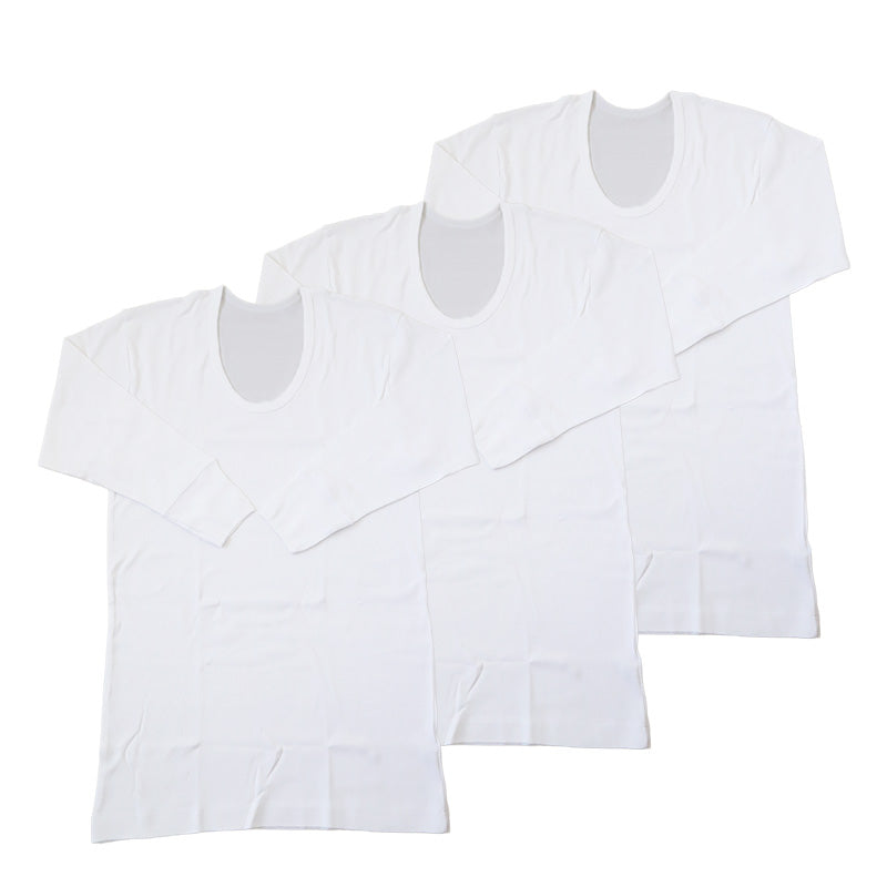 大きいサイズ 長袖 U首 クルーネック メンズ 綿100 3枚セット 3L 4L 5L