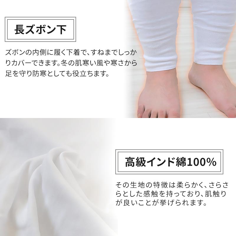 ズボンの内側に履く下着で、すねまでしっかりカバーできます。