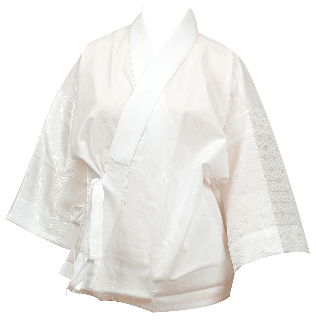 八重の下着本舗 婦人用 さらし天竺 麻柄 長袖手付半衿 半襦袢 M・L (じゅばん 着物 着付け 和装 東衿 衣文抜き 抜き襟布 半襟付き 成人式 振袖 留袖 婦人 レディース 綿 麻の葉柄 八重の下着本舗) (取寄せ)
