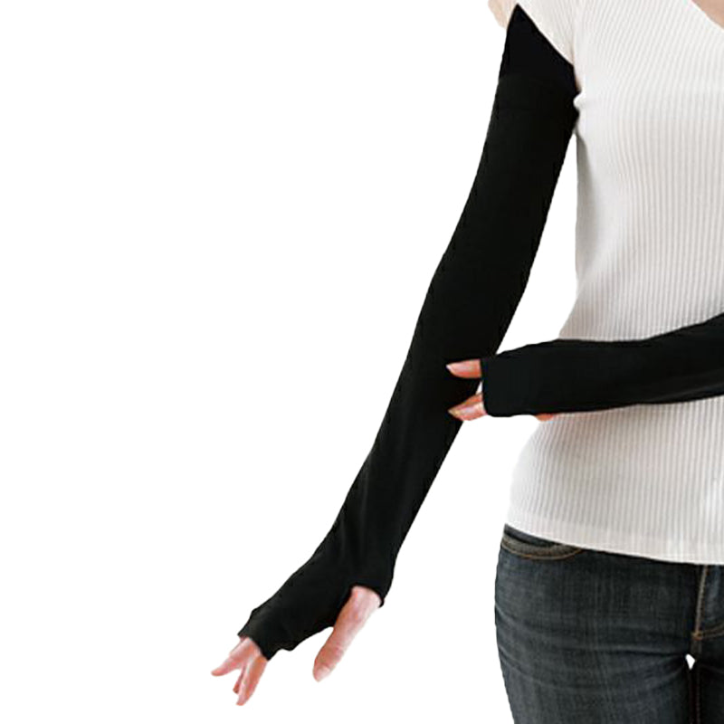 紫外線対策/レディース/女性/婦人/腕カバー/ロング丈/ひんやり/伸縮性/シンプル/無地/横じま/しましま/日本産/国産/国内産/国内生産/メイドインジャパン/アウトドア/キャンプ/野外/夏フェス/(ブラック)/(ブラック×グレー)/(ブラックメッシュ) l-goods 26146 26160 26177/TR/yokubou76