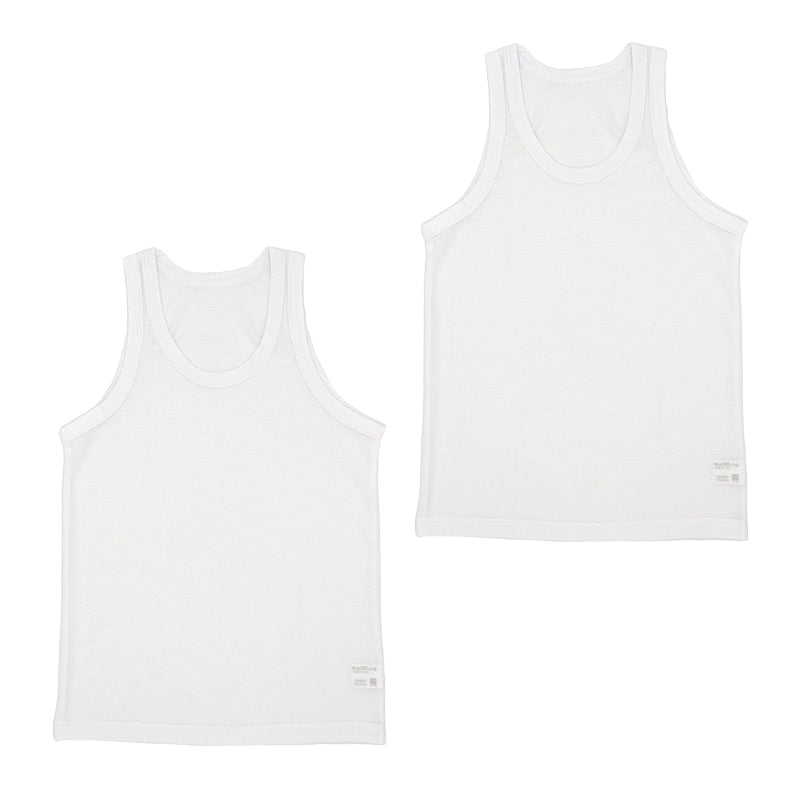 こちらはベーシックな白無地の男児用タンクトップ(ノースリーブ・ランニングシャツ)2枚組です。