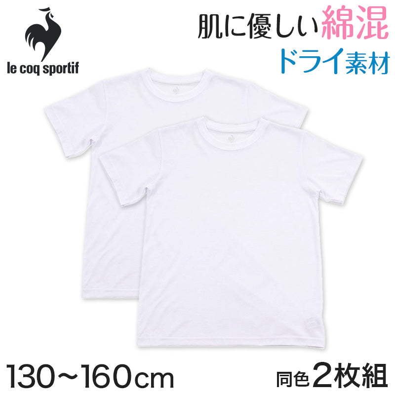 ルコック キッズ 丸首半袖Tシャツ 2枚組 130cm~160cm (子供 下着 男の子 キッズ インナー 半袖 tシャツ ジュニア 肌着 綿 シャツ 140 150 白 無地) (在庫限り)