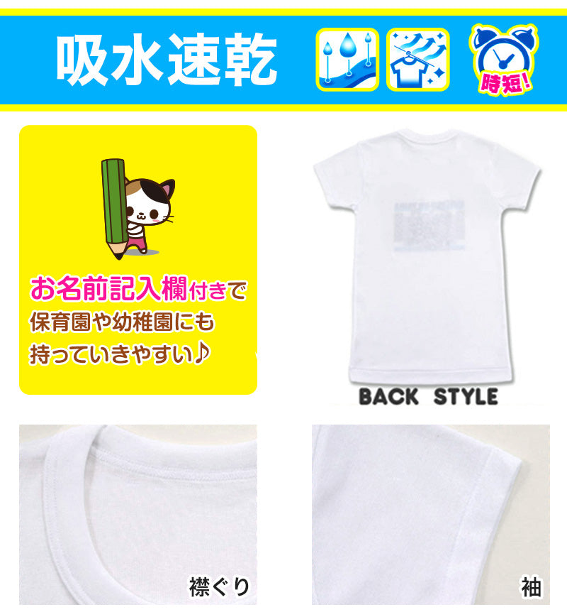 フライス編み/汗をかいてもすぐに乾く吸水速乾素材/お名前が書けるネームタグあり/丈夫で伸びにくいバインダー仕様(襟ぐり)