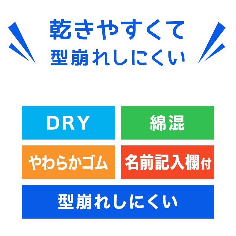 前あきタイプ/綿混/DRY(ドライ素材)/やわらかゴム/お名前記入欄あり/型崩れしにくい/色違い2枚組