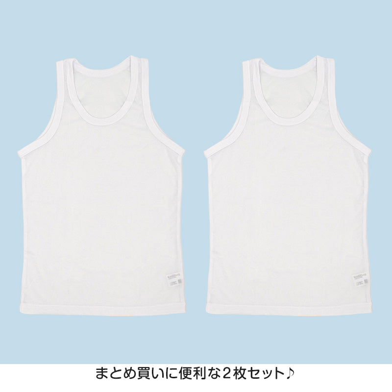 タンクトップ キッズ 男の子 肌着 ジュニア 白 乾きやすい インナー ドライ 2枚組 110cm~160cm (男児 ノースリーブ 男子 ボーイズ 子ども 下着 スリーブレス アンダーウェア)