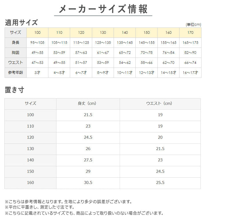 - 100cm(身長:95-105cm/ウエスト:47-53cm)