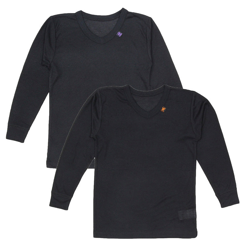 男の子 インナー 8分袖 2枚組 女児 子供用 肌着 120 130 140 150 160 170cm あったか 温度調節 吸熱 放熱 通園 通学 吸湿 速乾 うす手 薄手 軽い 無地 シンプル ブラック 黒 子供服 下着
