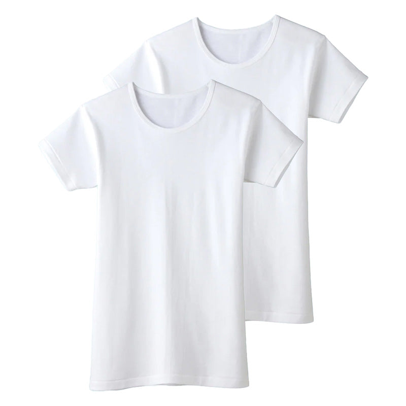 洗い替えにもうれしい2枚セットの男児肌着となっています。着膨れしない半袖タイプ。襟広めです。