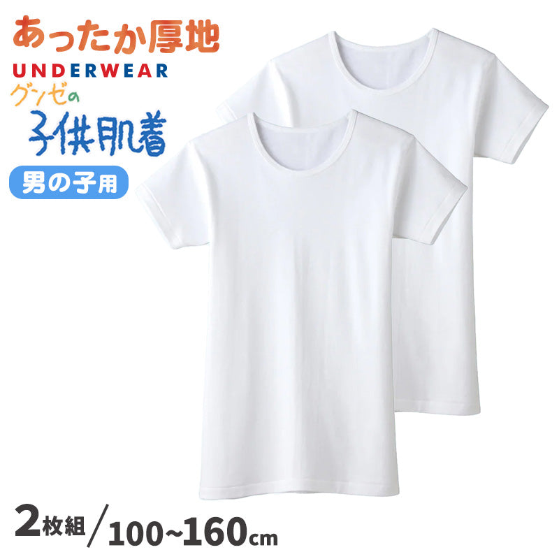 グンゼ 子供 肌着 半袖 男の子 綿100% 厚地 丸首シャツ 襟あき広め 2枚組 100cm~160cm キッズ 下着 インナー 綿100% コットン 子ども あったか 秋 冬 半袖シャツ
