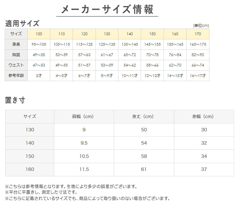 - 130cm(身長:125-135cm/胸囲:61-67cm)