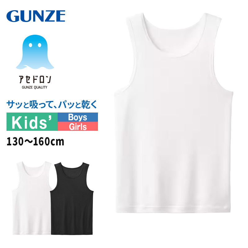 アセドロン キッズ タンクトップ 下着 子供 男の子 女の子 グンゼ 130cm~160cm 肌着 速乾 夏 インナー 130 140 150 160 消臭 ランニング シャツ ノースリーブ (在庫限り)