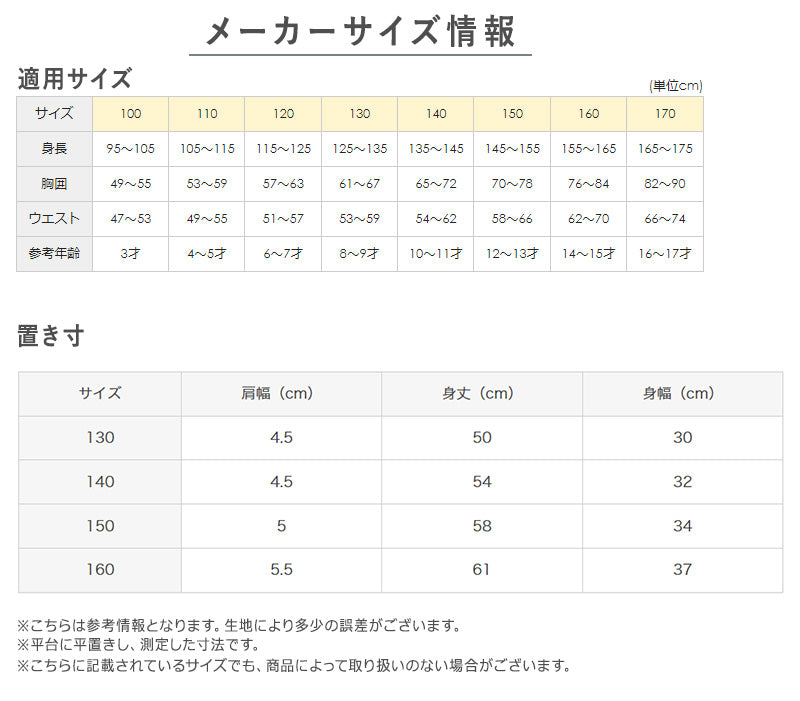 - 130cm(身長:125-135cm/胸囲:61-67cm)