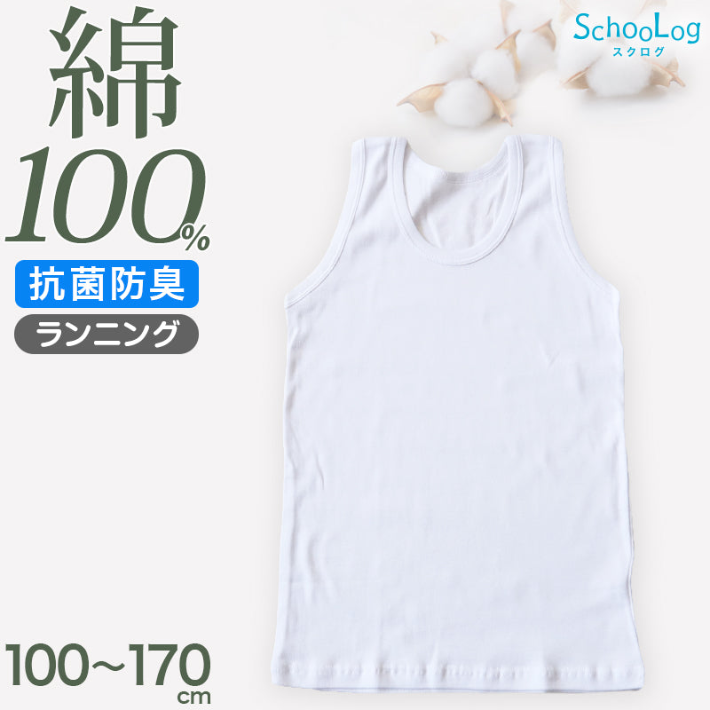 【男の子】/【ランニングシャツ】/【100cm】/【110cm】/【120cm】/【130cm】/【140cm~】/【SchooLog[スクログ]】/【ホワイト系】/【綿100%】/【通年】/【抗菌防臭】