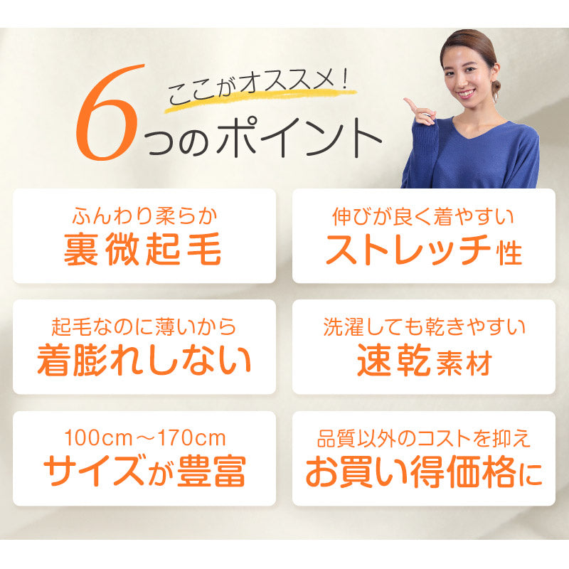 裏起毛(微起毛)/ストレッチ性あり/洗濯しても乾きやすい速乾素材/着膨れしない