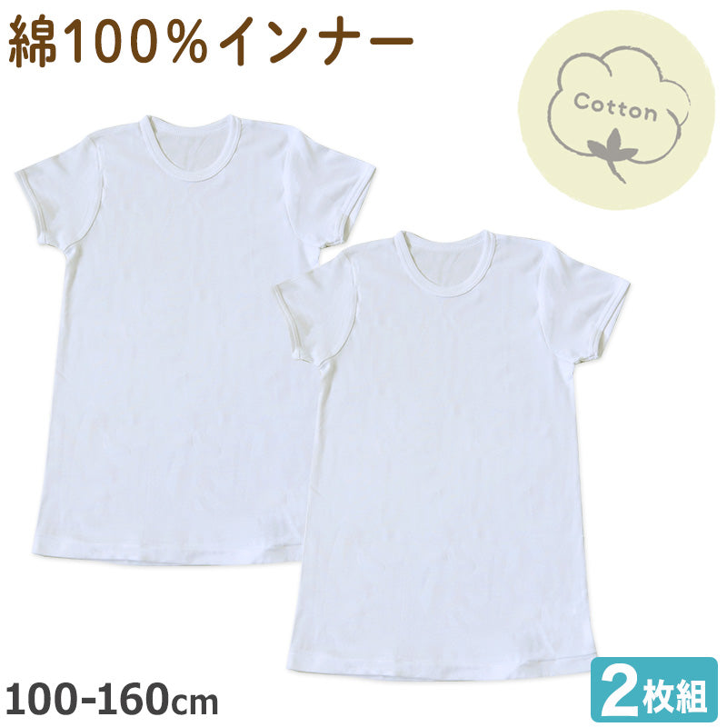 男の子 子供 半袖 インナー 綿100 2枚組 100cm~160cm 下着 シャツ 肌着 綿100% 男児 子供肌着 子ども キッズ ジュニア 無地 シンプル セット 2P コットン 白