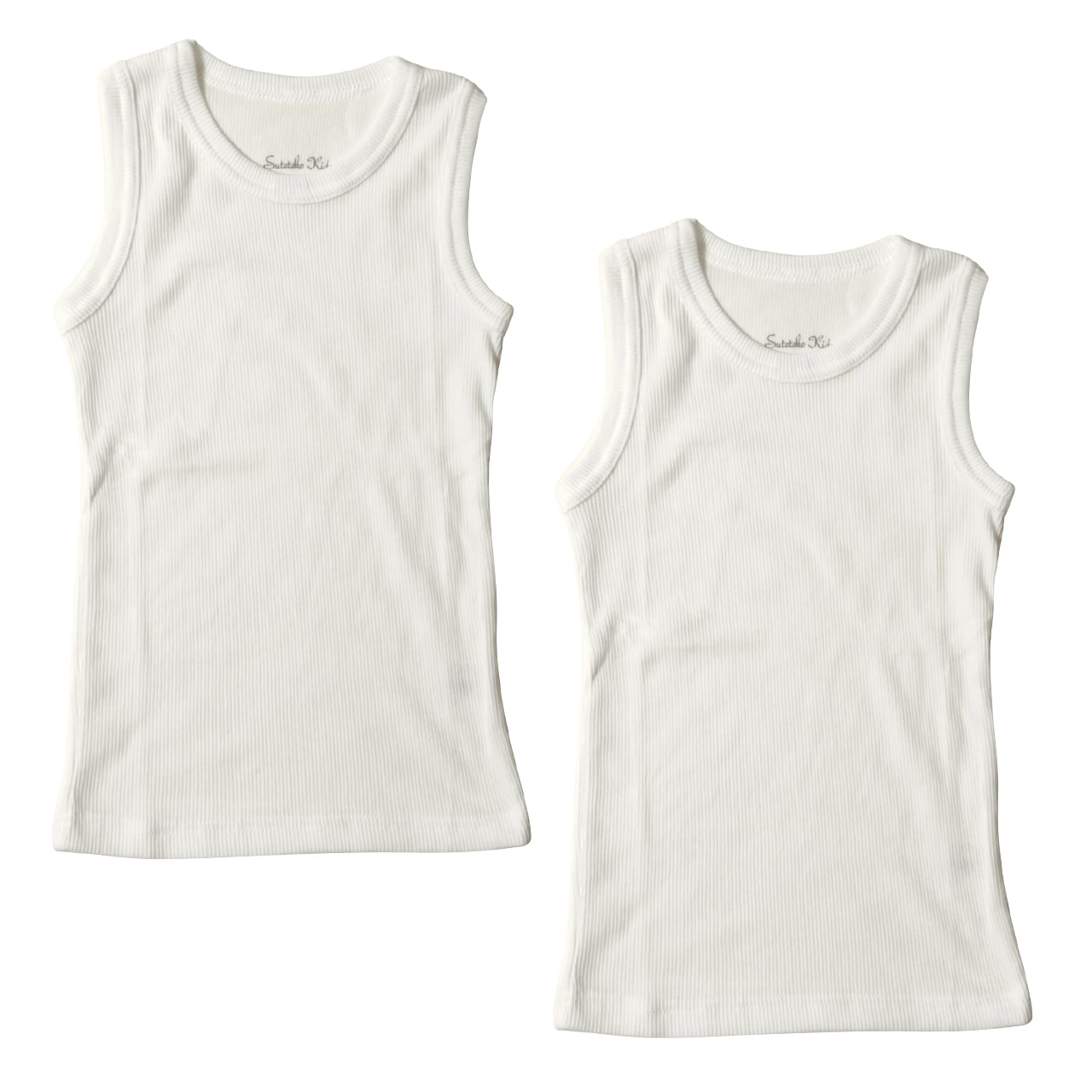 タンクトップ キッズ 子供 無地 2枚セット 110cm~160cm (女の子 男の子 ジュニア リブ ノースリーブ ランニングシャツ おしゃれ インナー 重ね着 子供服 110 120 130 140 150 160) (在庫限り)