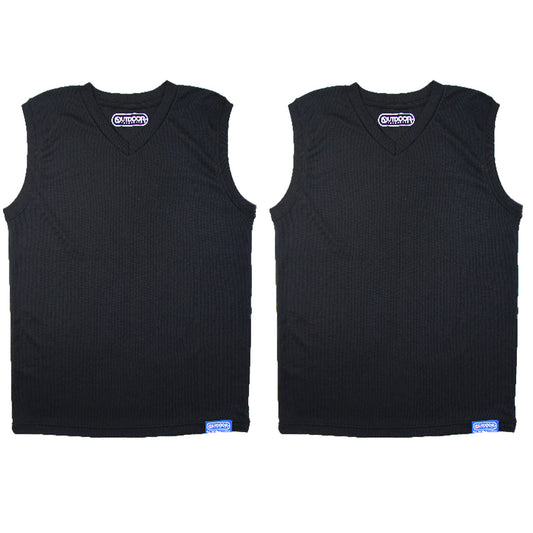 Outdoor 男の子 ハニカムメッシュ スリーブレスシャツ 2枚組 130cm~160cm (アウトドア Vネック 子供 肌着 インナー 小学生 白 黒 無地 メッシュ 130 140 150 160) (在庫限り)