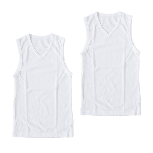男の子 肌着 タンクトップ 子供 2枚組 速乾 vネック ノースリーブ シャツ 110~160cm 下着 キッズ サーフシャツ インナー 白 アンダーウェア V首シャツ 男子 鹿の子 カノコ 乾きやすい (在庫限り)