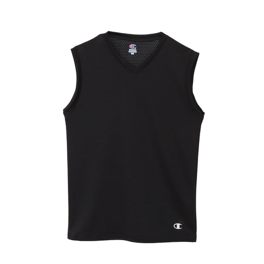 Champion キッズ インナー メッシュ ノースリーブ 男の子 Vネック 2枚組 130cm~160cm 下着 tシャツ 子供 男子 肌着 吸汗速乾 スポーツ 白 黒 薄手
