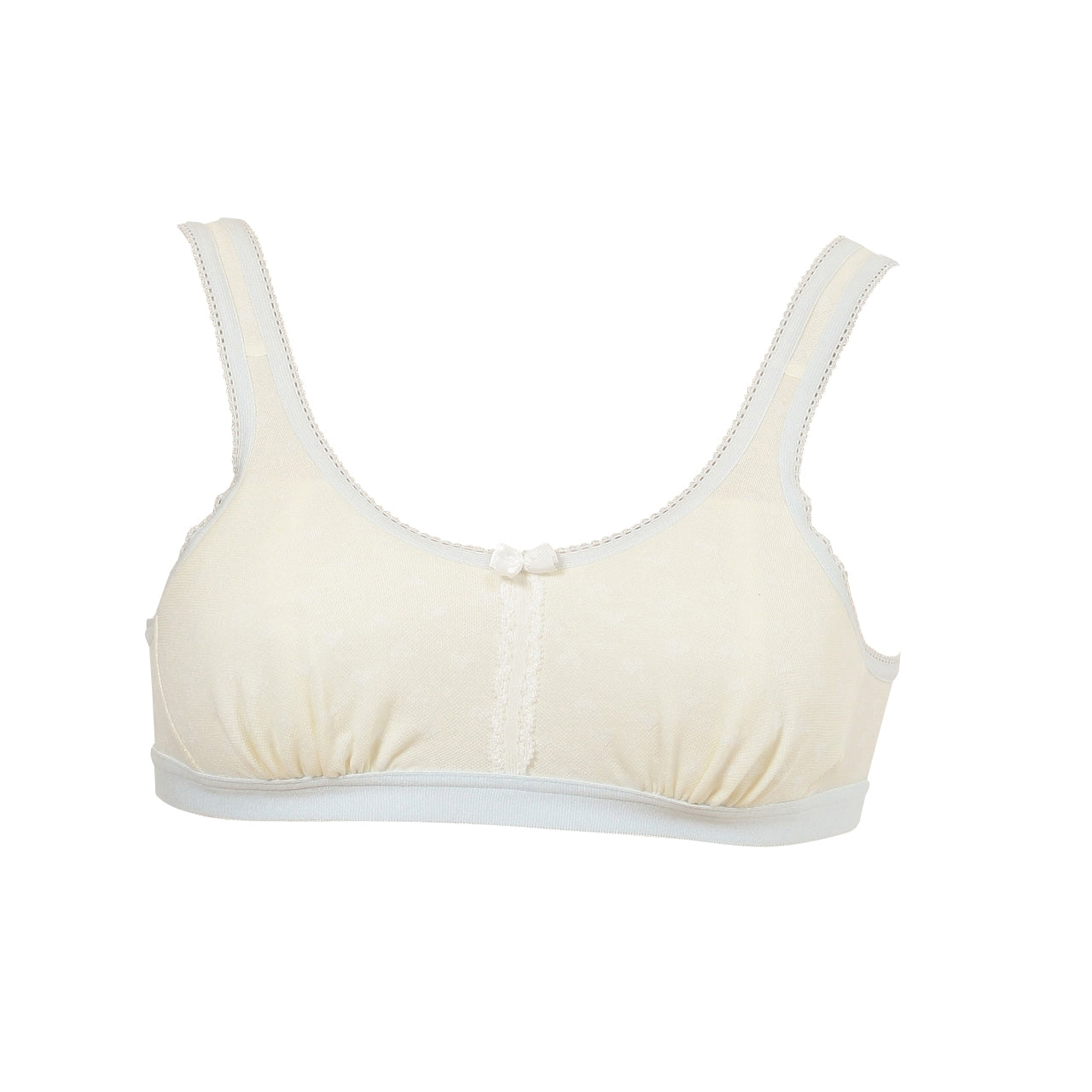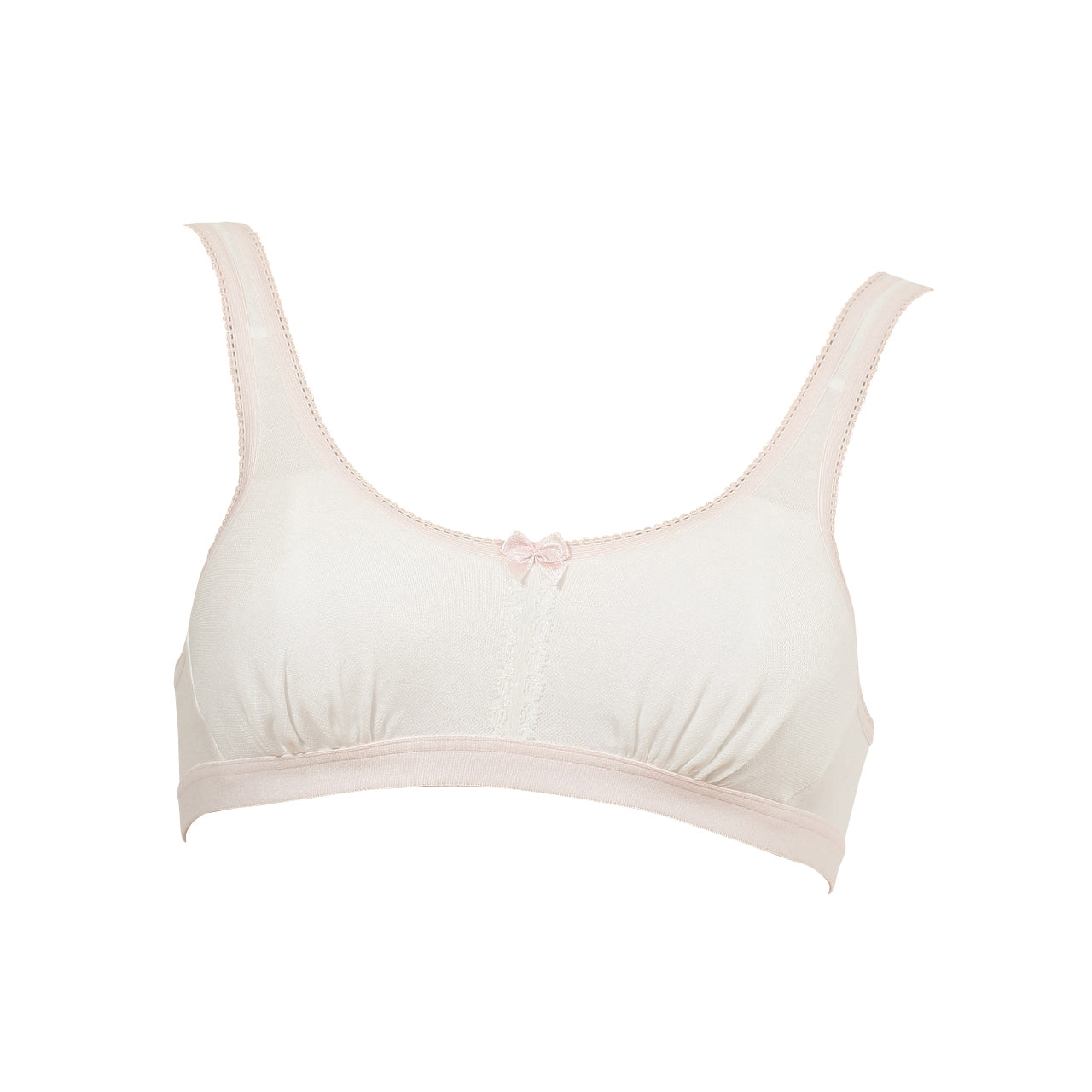 カップ裏はふんわりやわらか肌ざわりのパイル素材で、成長中の胸にやさしくフィット。
