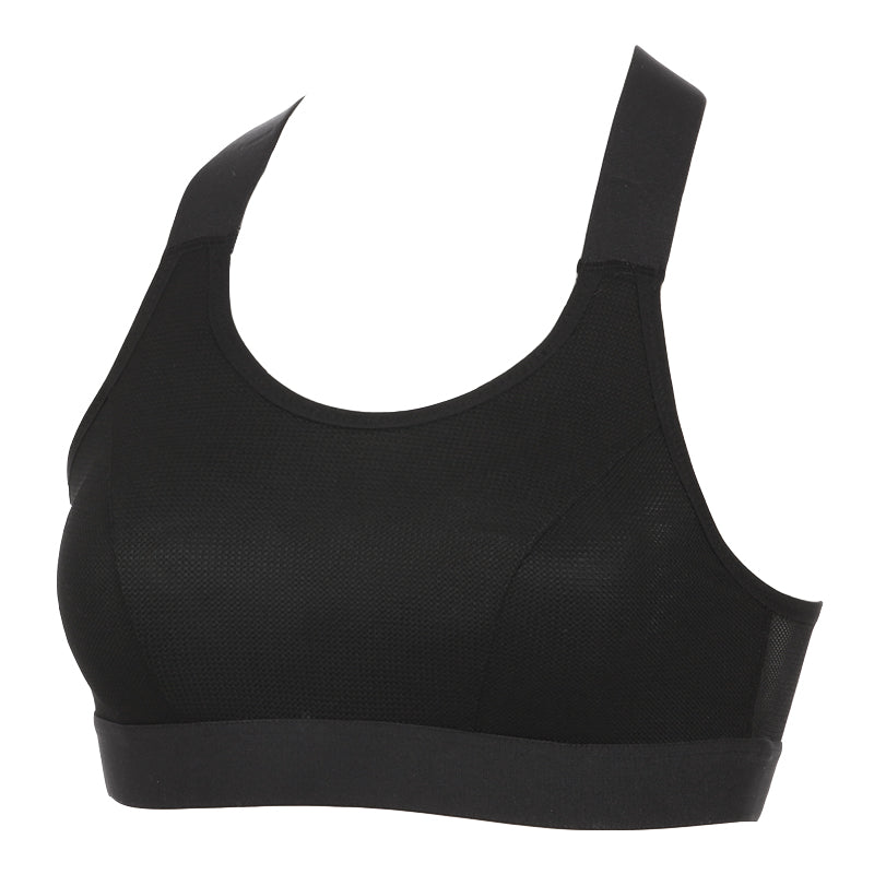 カップ裏吸汗速乾加工、両脇&バスト上部パワーネット内臓、バスト揺れ防止、腕の動きを妨げないクロスバック、幅広アンダーテープでしっかりフィット、パッドポケットなし
