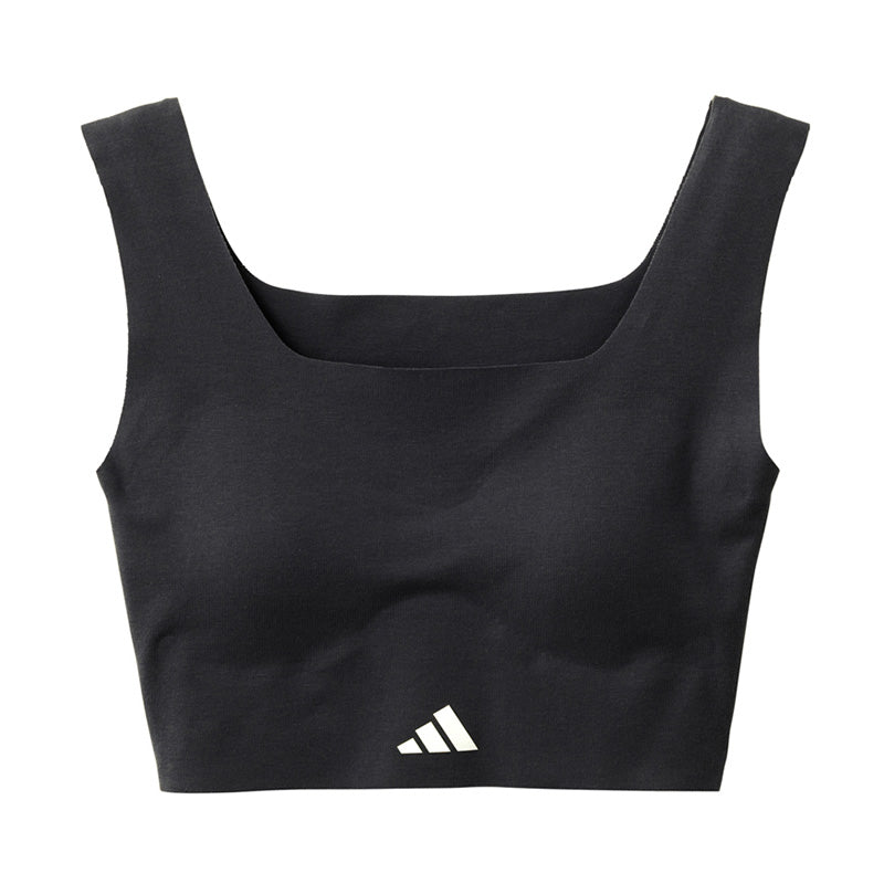 アディダス ガールズ ハーフトップ 無縫製 スポーツブラ 150 160 165 cm インナー スクエアネック ジュニア 女の子 下着 シンプル ひびかない シームレス ブラトップ カットオフ 快適 スポーツウェア トレーニング 部活 デイリー 軽い ストレスフリー パッド付き