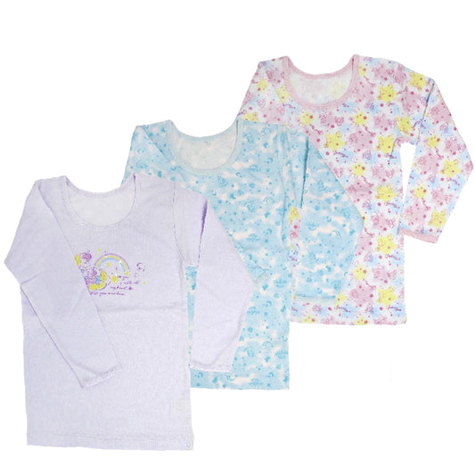 綿100% 8分袖インナー 長袖 3枚組 女の子 キッズ ジュニア インナー 100 110 120 130 140 150 160cm 柄 ピンク パープル ブルー かわいい シャツ 子供 下着 綿素材 通園 通学 肌着 幼稚園 保育園 園児 小学生 女児 下着 コットン 綿インナー
