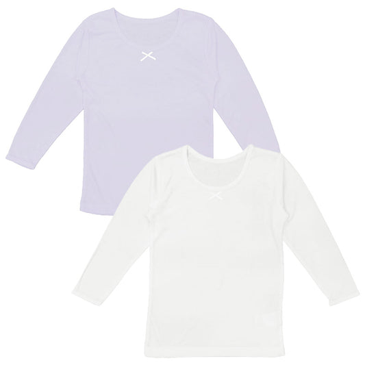 女の子 インナー 8分袖 2枚組 女児 子供用 肌着 120 130 140 150 160cm あったか 温度調節 吸熱 放熱 通園 通学 吸湿 速乾 うす手 薄手 軽い 無地 シンプル ホワイト パープル 子供服 下着