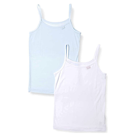 女児 キャミソール 胸二重 インナー 接触冷感 2枚組 140cm~160cm キッズ 子供 下着 肌着 夏 シャツ 女の子 女子 ジュニア 白 水色 無地 シンプル セット (在庫限り)