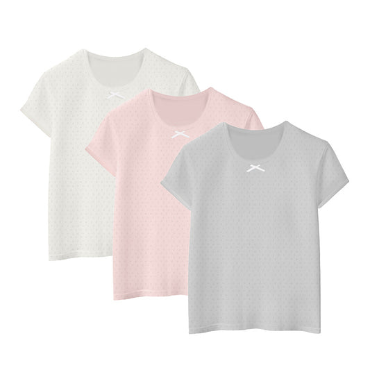 子供 女の子 綿100 半袖 インナー シャツ 3枚組 パターンメッシュ 3分袖 100 110 120 130 140 150 160 cm ガールズ キッズ 女児 女子 下着 肌着 綿 コットン ピンク グレー ホワイト 無地 シンプル セット スリーマ― (在庫限り)