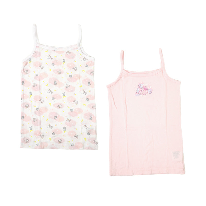 色・柄おまかせのお買い得な女の子用キャミソール2枚組です。
