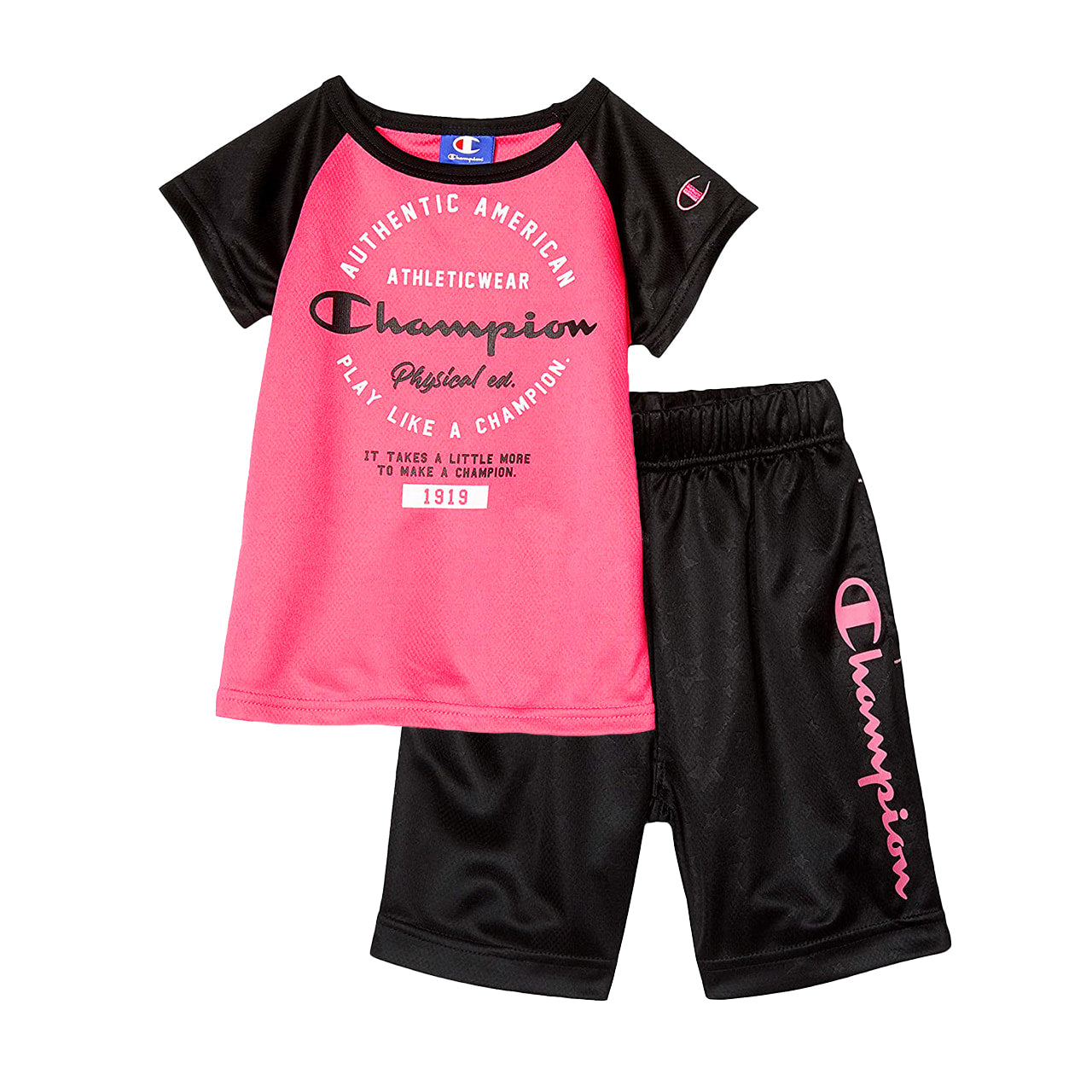 チャンピオン・ガールズ用Tシャツ&ハーフパンツ上下セットです。