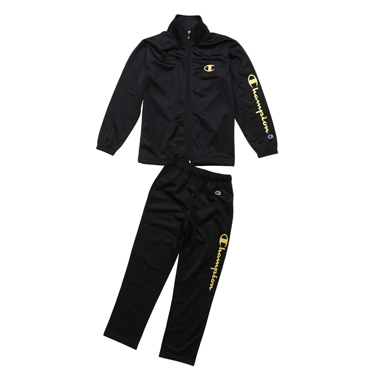 チャンピオン ジャージ 上下 セットアップ キッズ 男の子 こども スポーツウェア トレーニングウェア ジャケット パンツ フリース ロゴ ブランド 黒金 140cm~160cm champion 上下セット トレーニングスーツ 140 150 160 ボーイズ 子供 子ども (在庫限り)