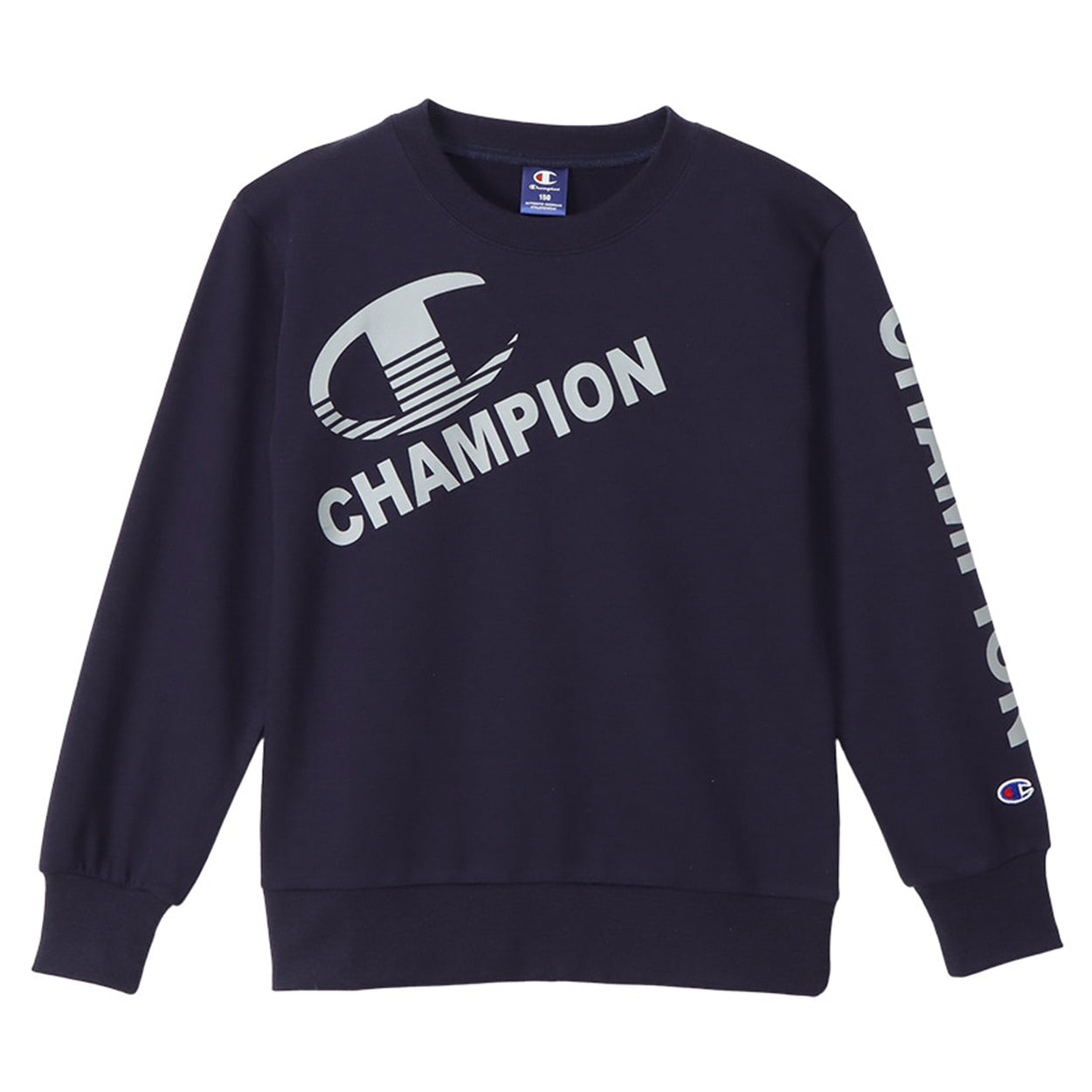 チャンピオン スウェット キッズ 綿 裏毛 グレー 黒 ネイビー ロゴ ダンス 部屋着 おでかけ おしゃれ アメカジ コーデ 130cm~160cm (champion 秋冬 こども 男の子 女の子 ジュニア トップス シャツ ルームウェア 130 140 150 160) (在庫限り)